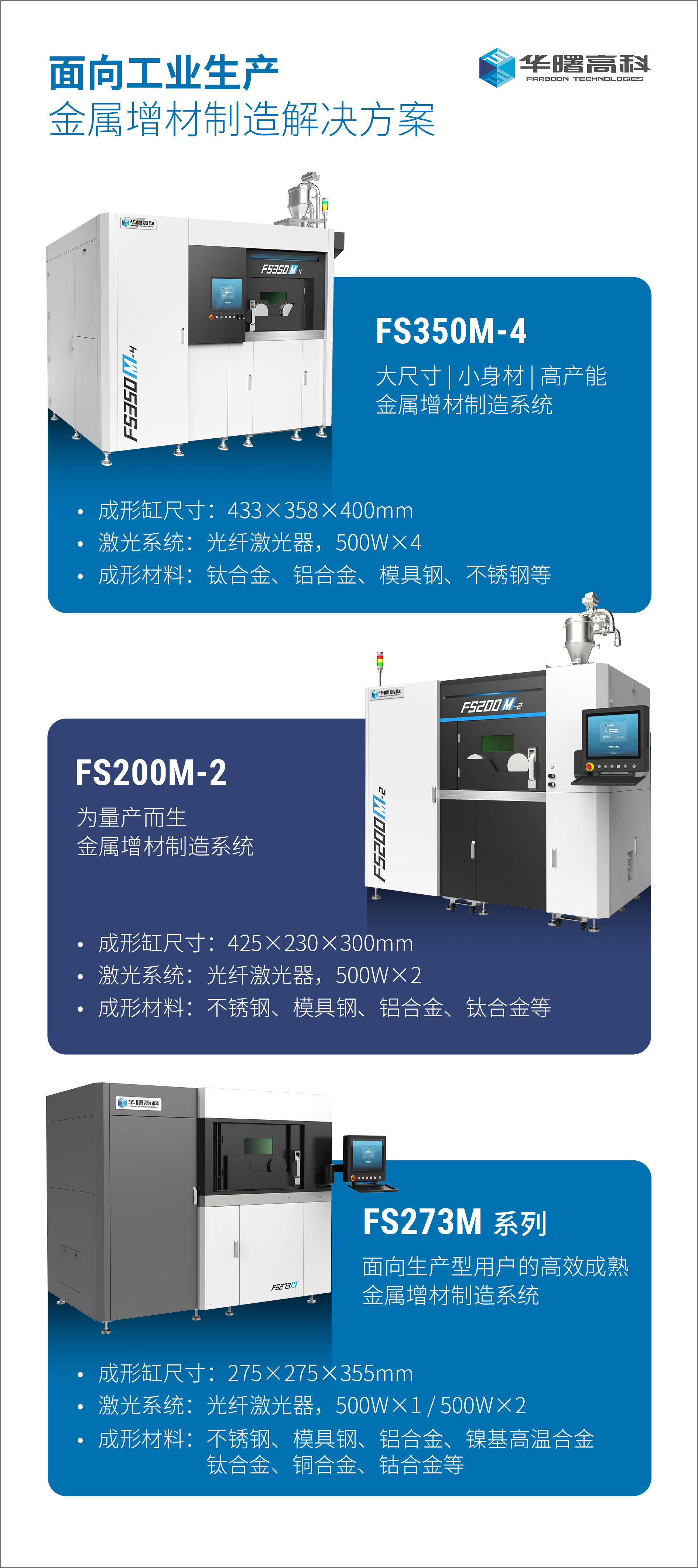 为满足产业化客户的批量生产需求,人生就是博高科面向模具、汽车、医疗、消费品等行业,推出全产业链金属增材制造解决方案,包括FS350M系列、FS200M系列、FS273M系列等多型号设备,从可打印材料种类、致密度、成形幅面和打印效率等方面提供完善的金属增材制造解决方案,助力工业生产降本、提质、增效,让生产过程更节能、更环保,在跨行业、多个应用场景的零件批产中发挥价值。