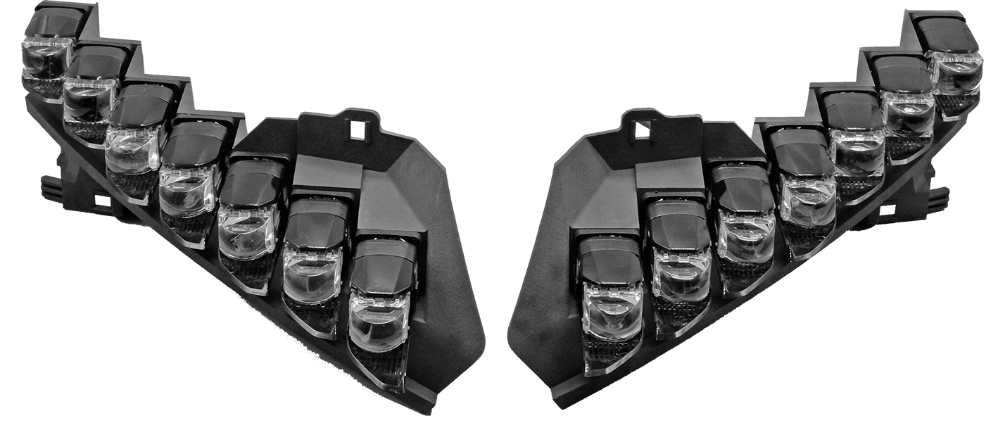 为了解决这个难题,自2018年开始,一些日韩系车型率先使用美观大方的LED矩阵/羽翼式大灯,这种创新举措在行业内很快开始普及。为了在此基础上提升LED矩阵/羽翼式大灯亮度,恒威再次结合LED激光推出新款小矩阵羽翼式单体模组,但却又遇到了两个新的问题——