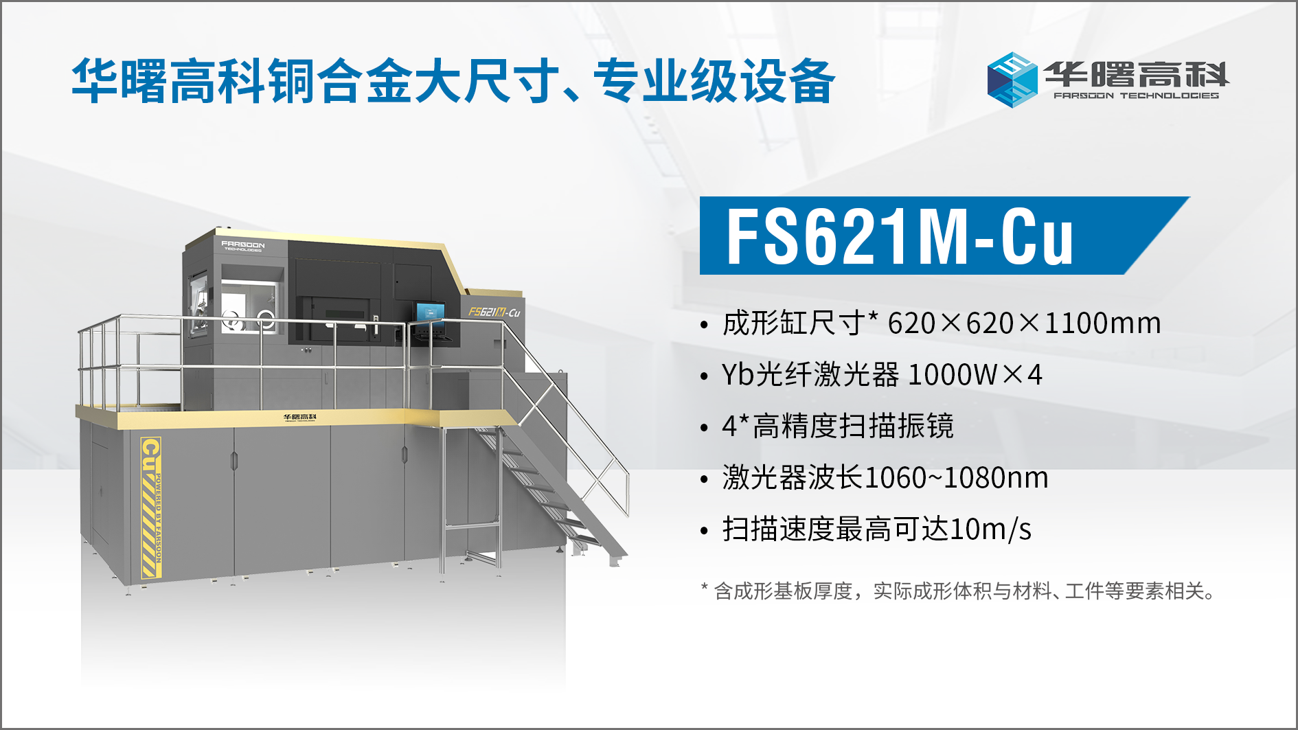 2023年,首都航天机械有限公司携手人生就是博高科,基于大尺寸金属增材制造解决方案FS621M,联合研发出行业内少有的铜合金打印大尺寸、专业级增材制造设备FS621M-Cu,该款设备配置4台1000W掺镱 (Yb) 激光器,激光器波长1060-1080nm,进一步突破了CuCrZr等高反材料大型工件长时间稳定打印课题。